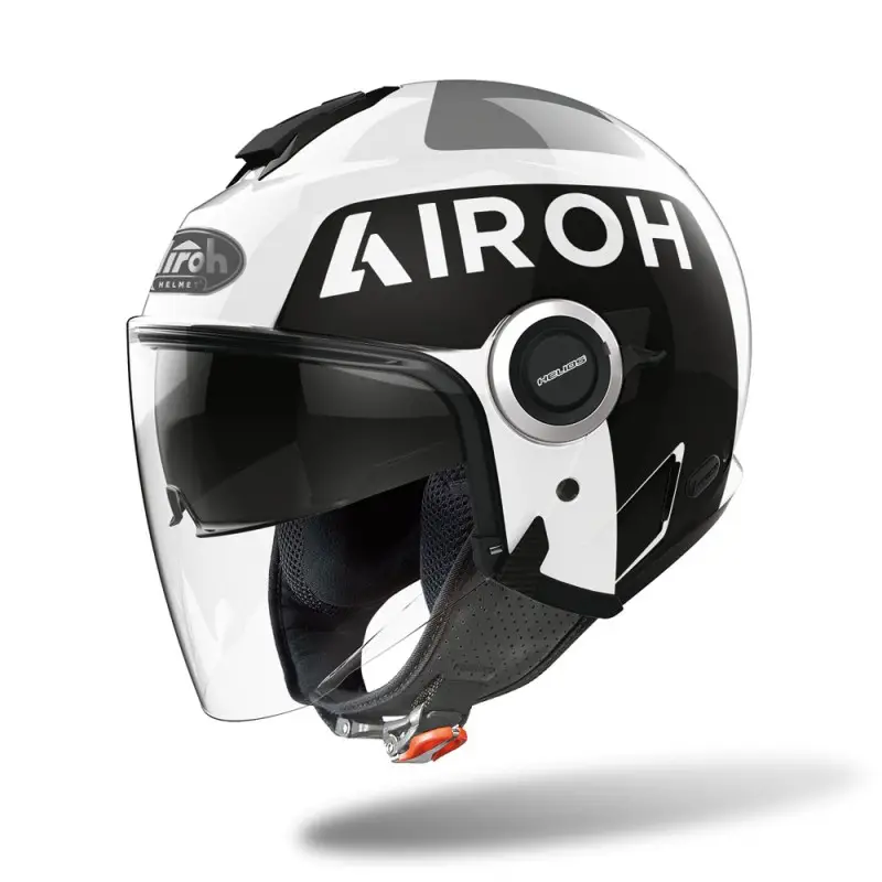 Casco Moto Jet Airoh HELIOS UP BIANCO NERO LUCIDO