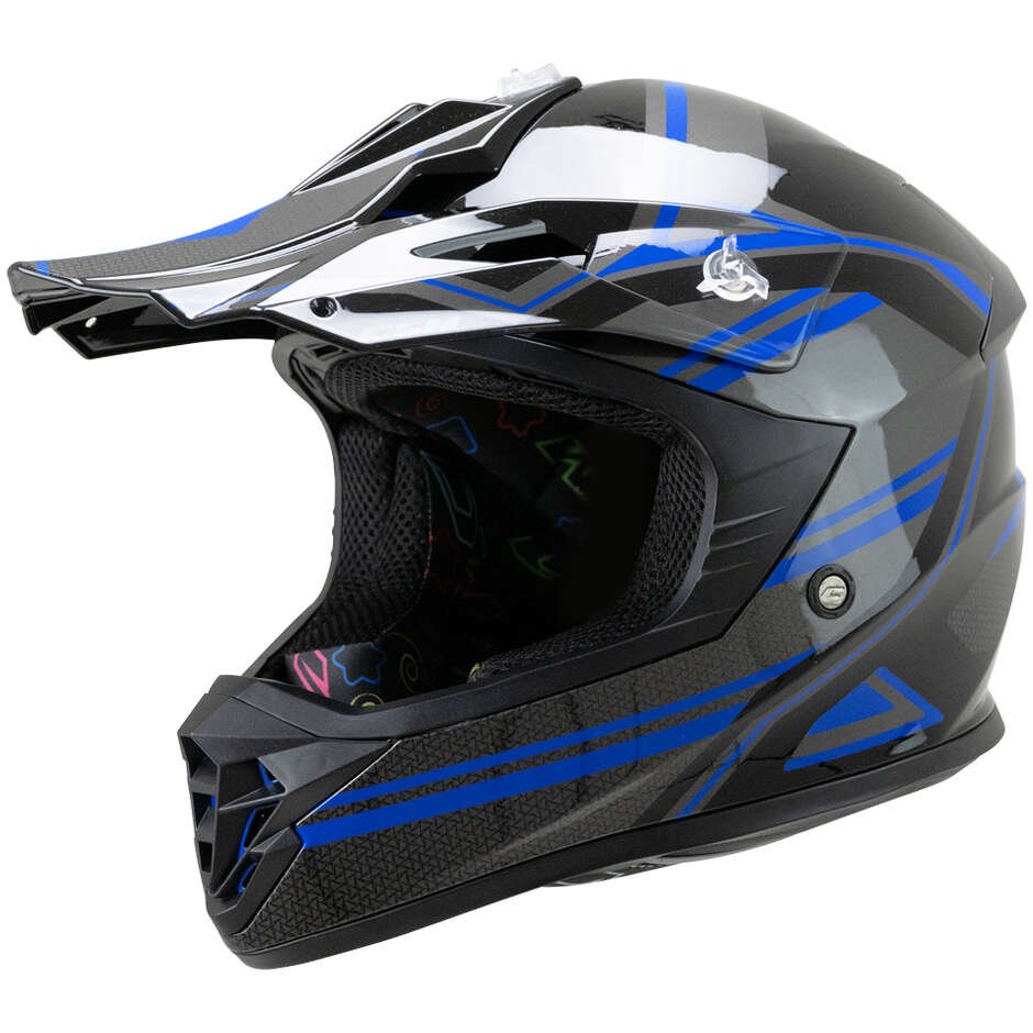 Casco Moto Bambino Cross Enduro CGM 267G DIRT-X FURY Nero Grigio Blu