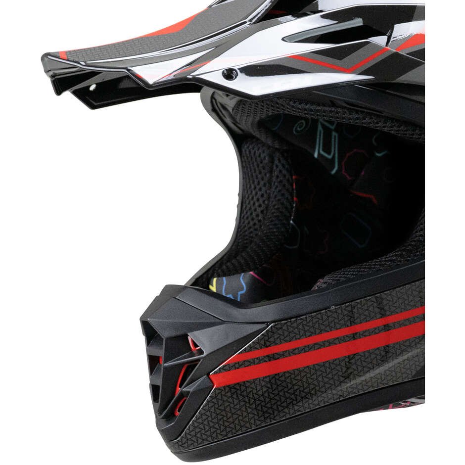 Casco Moto Bambino Cross Enduro CGM 267G DIRT-X FURY Nero Grigio Rosso