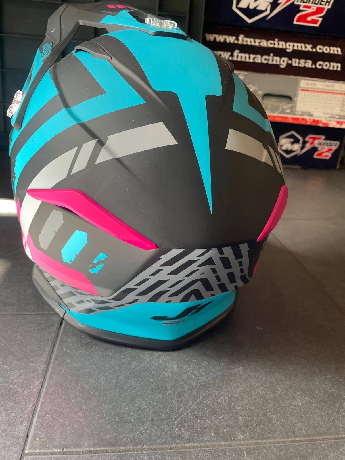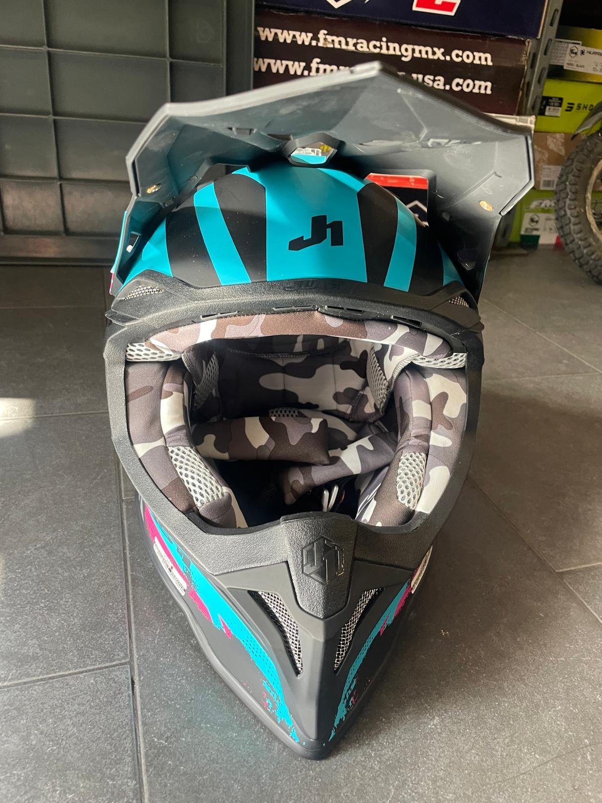 Casco Moto Cross Enduro JUST1 J-39 Marshall Teal Black Pink Matt