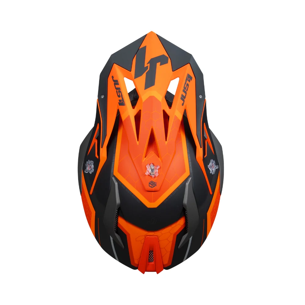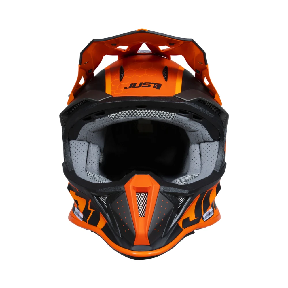 Casco Moto Cross Enduro JUST1 J18-F HEXA Orange Titanium Black