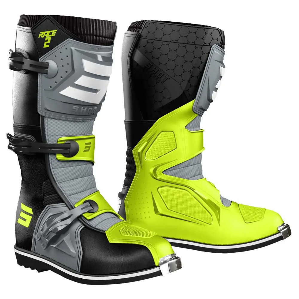 Stivali Moto Cross Enduro CE Acerbis X-RACE Grigio Giallo Fluo